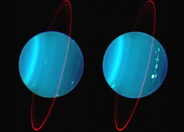Uranus has a very thick cloud cover and the atmosphere is made up of hydrogen, helium, methane and ammonia and it has 11 rings.